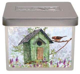 Just shy of birds chirping, the Garden Birdhouse Small Jar Candle will turn your home into a garden. The frosted glass jar is decorated with the enchanting artwork of a green birdhouse and little bird painted by Tim Coffey. In addition, the candle gives off a rich, earthy mix of fresh cut thyme for a soothing atmosphere.