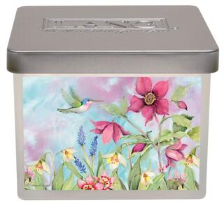Bring your spring garden inside with the Garden Joys Small Jar Candle by LANG! Take in the fresh smells of dew-kissed white jasmine in the early morning sun, and brighten your days with vivid watercolor artwork by Susan Winget forming bright blossoms and a fluttering hummingbird. Fill your home with amazing scents while adding a touch of enchanting decor to a room with a candle from LANG Decor�!