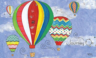 The Journey On Door Mat by LANG will greet your guests with an inviting scene of colorful hot air balloons and script that reads Journey On. Wendy Bentley's marvelous artwork will light up any entryway indoor or outdoor. LANG Door Mats are made of 100% polyester with a slip-resistant rubber backing!