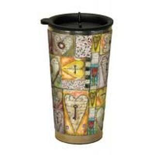 The Key To My Heart Travel Mug is a lovely way to take your morning cup of joe on the go. Made with a hard plastic, art-wrapped exterior featuring stunning, full-color artwork of a collage of keys and hearts by artist Lisa Kaus, and a stainless steel interior to keep your favorite beverage warm, this truly enchanting 16 ounce LANG travel mug is sure to become your favorite go-to mug. Designed to accommodate your busy schedule, this convenient LANG travel mug features a spill-resistant lid and a tapered shape to fit in car cup holders that allows you to easily take your coffee with you without spilling a drop. Each cute travel mug is made from insulated ceramic, stainless steel, or strong acrylics, and features a unique design or stylish print. Buy one for yourself or give one as a gift! Be stylish on the go and at home with a travel mug. These mugs are too cute to keep at home, so grab an extra coffee mug for work or the office and perk up your morning!