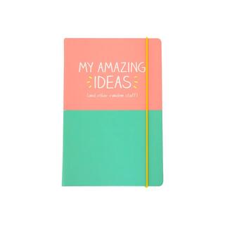 Have this cute notebook at the ready for when those amazing ideas pop into your head. Message on cover reads: MY AMAZING IDEAS (and other random stuff). This hardback cover notebook features sherbet orange and green color blocks, contrast yellow elastic band and lined pages with yellow colored edges.
