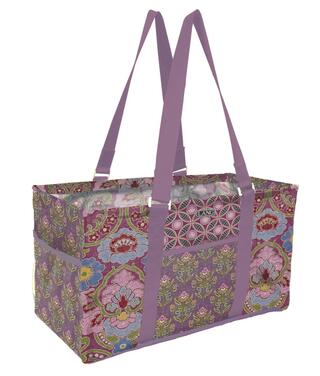 Made to fit your mobile storage needs for just about anything, the Orchid Ikat Utility Tote's large open design is constructed with a sturdy metal frame to carry just about anything and contains 4 outer pockets for additional storage. The sleek modern layout of Suzanne Nicoll's violet/purple orchid pattern with have you looking fashionable on your next getaway trip or at the beach!
