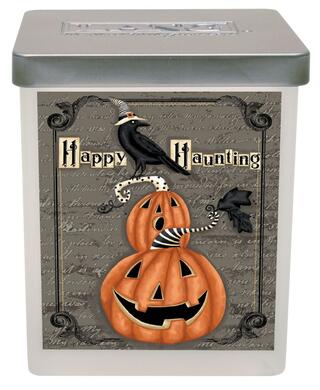 Add to your Halloween decorations with the Spooktacular Large Jar Candle! The happy and jack-o-lanterns and crow and playfully spooky in linen embossed artwork by LoriLynn Simms. The soy beeswax burns cleanly and fills the air with the scents of sweet caramelized sugar, full cream butter and a dash of sea salt, a perfectly pleasant complement to Halloween treats. Fill your home with amazing scents while adding a touch of enchanting decor to a room with a candle from LANG Decor�!
